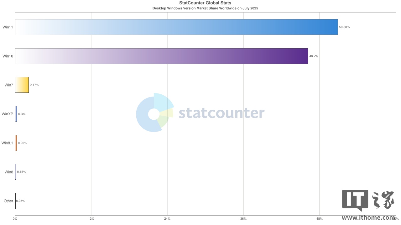2025-07-08STAT计数器数据显示,Microsoft Win11的全球部分为
